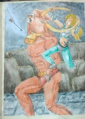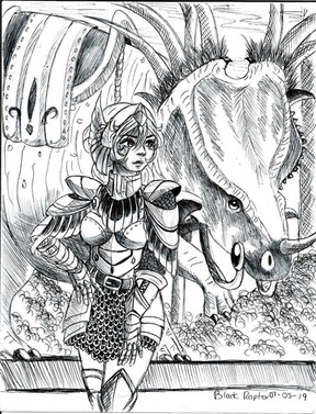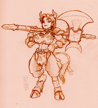 A doodle I started years ago that I worked on slowly over the years. It was partially inspired by that scene from Jurassic Park, where a steer was lowered into the raptor enclosure to feed them. Given my love for the minotauroid Holstaurs, I felt it was appropriate to flip the script, and draw a bovine creature stomping the EFF out of a raptor.