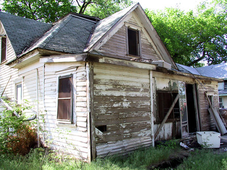 Note the mailbox on the ground next to the front door. I believe that this house (largely intact) was bulldozed later the same year as this picture.