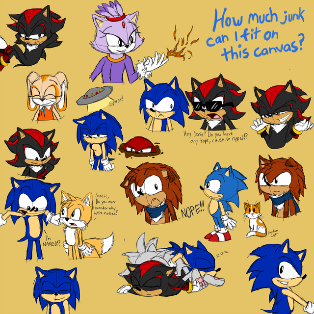 Oh okay Β Yeah unfortunately I'm bad at drawing Sonic style (meaning I tear my hair out while I do it cuz it's so difficult to look right) so I stopped doing stuff like this... But I wish I could see them adventuring together somehow! Haha