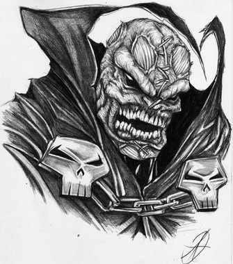 Spawn. Drawn for an 8.5"x11" picture frame. To compliment the earlier Clown drawing. 😉Sold.