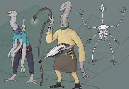 The Quarlatans are of high stature, higher than humans, though the species commonly walk on all four limbs, between times standing on the hide limbs and utilizing the front ones as arms. Being professional quadrupeds and utilizing knuckle-walking and, at the same time, practicing efficient bipedalism, the Quarlatans are one of the best-suited creatures to locomote in an arduous environment like forests and rocky hills.
