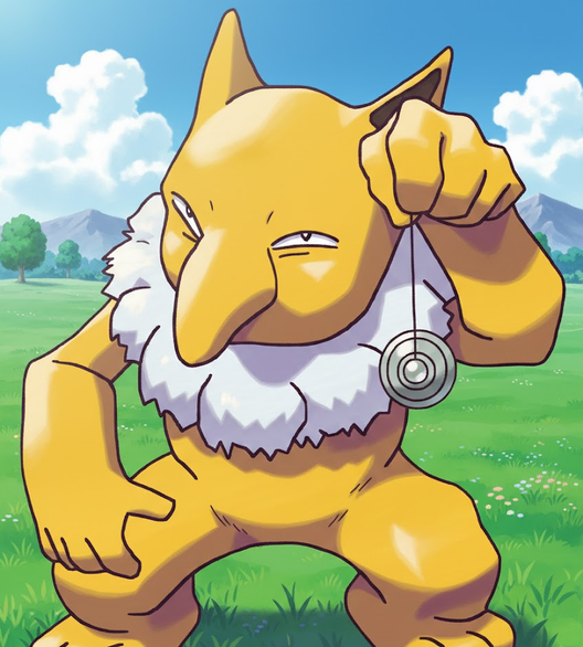 Kadabra: (Tilts head in wonder, extending his hand out, lifting you up with psychic)....Kad....dabra.....(star on forehead glows, then emits a beam into your forehead).....Kad.....da...bra.....