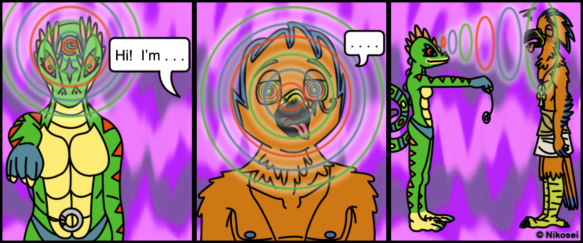 Coty got Regdeh just right! The crest feathers, the eyes and eye of Horus marking, the Ankh necklace, the awesome looking beak, and i just love how proper bird like he is! AND IN COLOUR!