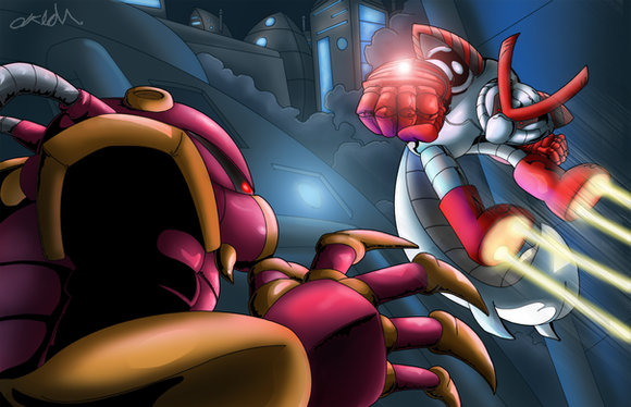 This is a request for M3tr0idgrl [link]This is Ms 'Splosion Man battling the Mighty Eternal, a robot built just for destroying Splosion Men!