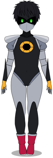 though, like the drones in her dimension, shes infectious, by simply touching her you could be at risk of becoming a drone, she's simply wearing many accessories and clothes to cover some spots up,