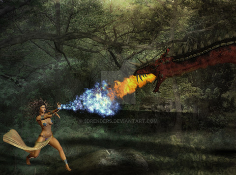 I changed my mind with this one just as I was in the process of uploading it. Originally it was an orangy red colour and always had that in mind while creating it. In the end the colour was too intense and the dragon and witch stood out even less well than in this version. Perhaps the witch and the dragon could stand out a bit more, but anyway this is it.I'd like to thank the following stock providers: