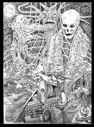 The illustration makes me think of the 9 circles of hell. It's so deliciously eerie.