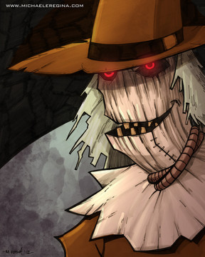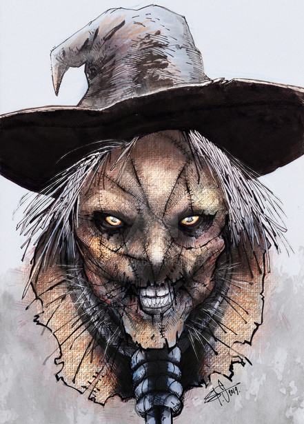-The Scarecrow (Dr. Jonathan Crane) is a fictional character, a supervillain who appears in comic books published by DC Comics. The character first appeared in World's Finest Comics #3 (Fall 1941) and was created by Bill Finger and Bob Kane. A psychologist who uses a variety of drugs and psychological tactics to exploit the fears and phobias of his adversaries, the Scarecrow is a member of Batman's rogues gallery.Drawing And Painting, intuos 4 with photoshop CS5.