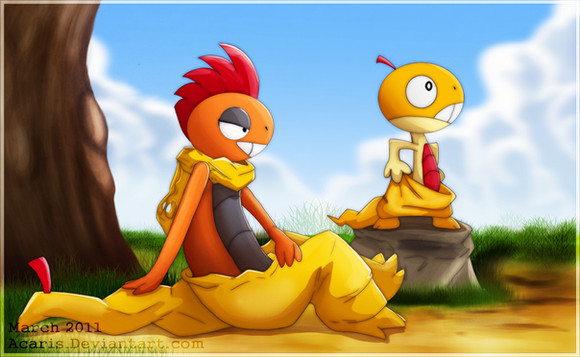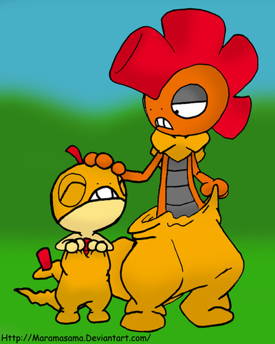 Scraggy and Scrafty from new gens of Pokemon, who are pretty much my new favourites at the moment ahdgasjLOOK AT THEIR AWESOME PANTS