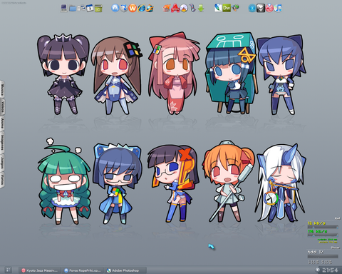 Mandatory desktop screeny. The background was put together from a series of super, super cute drawings based on Wipeout 3, unfortunately the name of the artist seems to be lost in the sands of time and interwebs.Related content