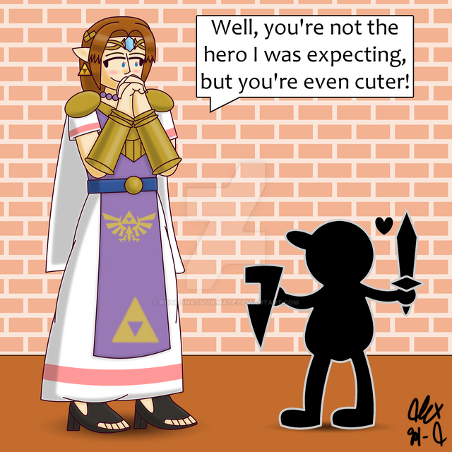I don't know if I've mentioned it before, but Helmet is my favorite Game & Watch game. Part of it is that it's the base for Flat Zone in Melee, but I think it's also pretty good on its own. It doesn't have much of an established pattern, making it a bit more chaotic, but it's never unwinnable. And the Modern version of it in Game & Watch Gallery 2 is also pretty fun.I thought it would be fun to draw Mr. Game & Watch building something for Zelda. She seems like the type to encourage Game's hobbies, and having him build things is pretty practical. Unless he's building something in the wrong spot, in which case, she needs to find a way to let him down gently.