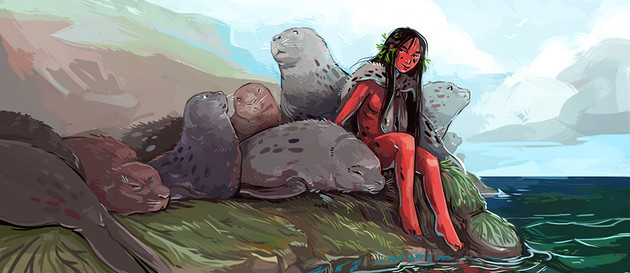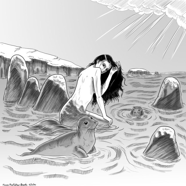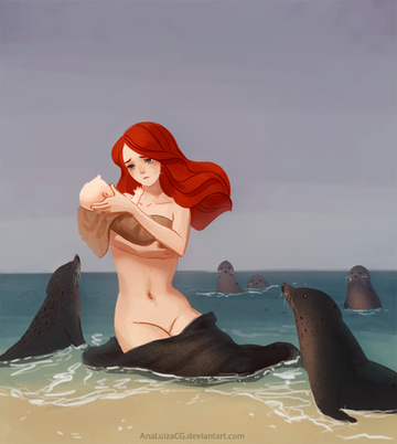 Selkies are gentle shapeshifters with the ability to transform into beautiful, lithe humans. When they assuned human form, they cast off their seal skins. If they lose their seal skins, they will not be able to transform back, and are trapped in human form.Part of Mythological sea Creature series