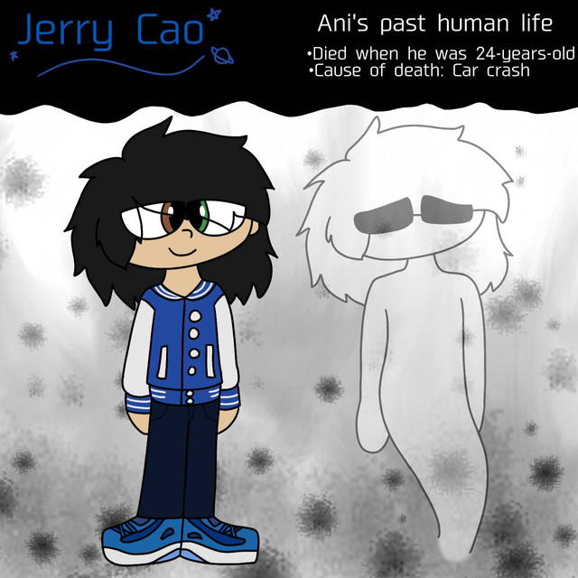 HOOMAN SPOTTED!!! This is Jerry! He's who Ani used to be when he was alive. Despite technically being the same person, the two have some differences. Jerry was an average guy. He was quiet, friendly, cautious, and responsible. He seemed carefree on the surface, but in reality, he faced a lot of stress due to anxiety and pressure from his family. Don't get him wrong, he loved his family and wanted to make them proud, but he would often overthink his behavior and studies, not to mention a big secret he wasn't sure they would be ok with. He's Asian-American, specifically Chinese, so that's a big contributing factor. Still, Jerry loved his culture and community. His favorite foods were ramen and dumplings, and he had a surprisingly high spice tolerance. As expected, he was a bit on the nerdy side. He was pretty serious about his schoolwork, despite the pressure of being gifted, and while he wasn't a gamer or watched many shows, he was into comics. I originally didn't put much thought into Ani's human identity. Hell, I even referred to him as "some guy" when I first made him. But I've grown really attached to Jerry and I can't wait to work on Suzanne (Lovesick) next!Related content