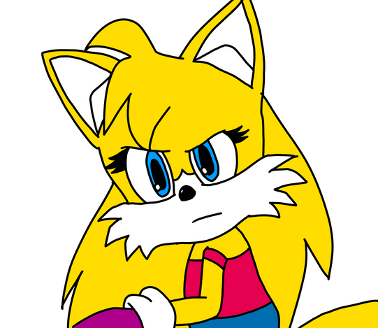 I hear it is trans appreciation day! To celebrate, I drew my Curse!Tails. She's canonically a transbian (trans and lesbian). Her real name is Amelia (a-mile-per-hour), and she's got a girlfriend who's her only source of comfort and sanity. She grew up pretty, wouldn't you say?(Also don't worry, she isn't transphobic LMAO)