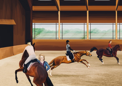 Steph pushed her hip down to the left, forcing her spine to straighten. She turned her heels down - where they’d been the last time she’d checked, dammit! - and tried to drive with the same hips she was shoving downwards. Riding was hard - Hayden was less position-driven and more interested in how she managed Fergus. Fergus had been challenging her a lot, and she enjoyed it, but with Mikayla and Red Clover, this was a lesson focusing on her body. She felt the red stallion’s stride open up a little more, and intuitively closed her hands around the reins. He immediately backed straight off, his stride slowing.