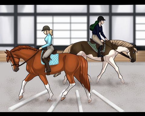 “She should definitely keep working on her ground manners- she’s listening to you, but she’s mostly focused on Clover. I can’t say for sure she’ll be the best mare for dressage. She’s got a decent build for it- but build doesn’t mean -” Mikayla paused noticing that her son had ridden a little closer “ - anything, if the horse’s personality isn’t in it. I’m not saying she can’t be intelligent, but keep an eye on her attitude, she’s got that teenage rebellion look in her eye.”