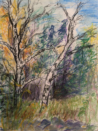 This is another painting (my second pastel painting) I did from the Tom Christopher pastel workshop. The reason this one is in scraps is because it still needs a little more work; there are some finishing touches to add and a couple forms to build up. The photo was taken from my friends when one of them was at a Dude Ranch in Colorado.I didn't want to paint the photo in traditional colors that your mind sees (basically greens) so I kept thinking about what Tom said, and that is "Value is everything". He sometimes doesn't even look at the color he's using, he just finds the right value on the pastels and goes with it. The result he gets is this very beautiful and natural looking expression of landscapes. This one turned out well for me I think. It seems like a natural setting to me even though I painted the tree trunks blue and red! As I said before on the other painting, I recommend taking his workshop-they are very reasonably priced (it's well worth it for what you gain) and very fun to get a lot of feedback and demonstration from a master. If you are interested, look up his site. Also check it out to see his paintings too, he did demos of paintings for the workshop and he cranked them out in just a little over an hour. The skill level is some of the highest professional work I've ever seen. He will soon have a DVD demo available (I work in video production and helped produce the DVD. I'm booked to edit it early 2016) so that will be an option for folks as well who aren't in the midwest.
