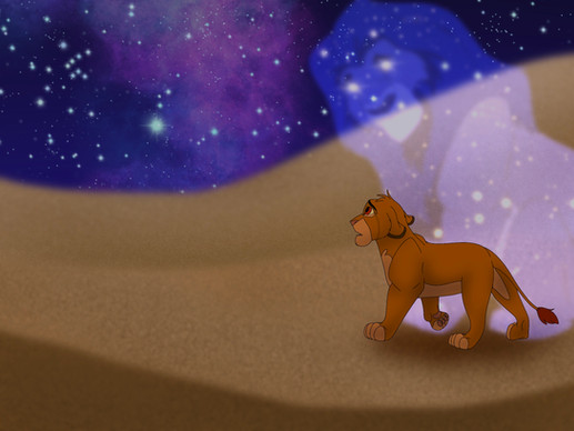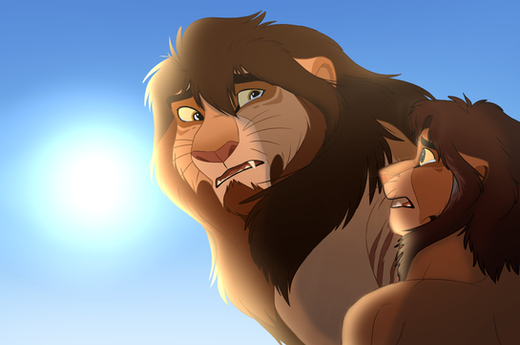 Kovu, at this point, was starting to doubt his identity. Zira was a pathological liar and killer. Would it be any surprise if she had stolen him away from this lioness Kula, his supposed mother? He looked down at the still-crying king and couldn't disagree that he sort of looked like him; their pelt colours were so close, their manes were so similar, and he was noticing some speckling of lighter hair growing in. Somehow, he could feel it in him all of a sudden. These lions he just met are his family. His real family.