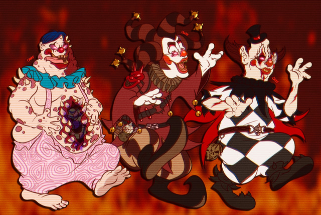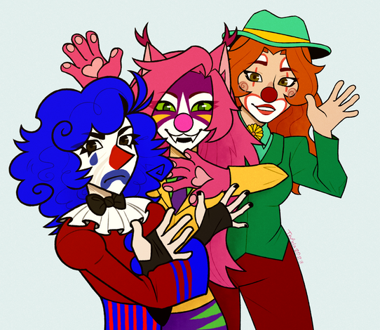 Because now, Dolly and Freckles are looking for Killer recruits!This was a commission for the darling SpectrePaw Of their Faephlosion, Spectre turned fresh into a Killer Klown.(In the middle) Now, how this occurred we will delve further into in the future.