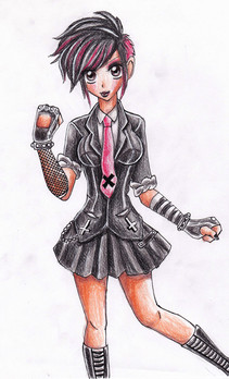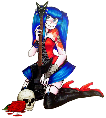 #anime #copic #female #girl #guitar #leather #manga #metal #punk #shari #skull #spikes #tattoos #toxicsugar #animemanga #copicmarkers #fullbody #guitarist #copicmarkerart