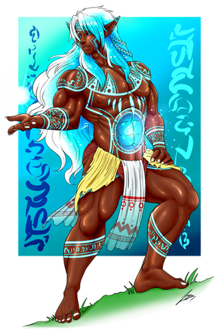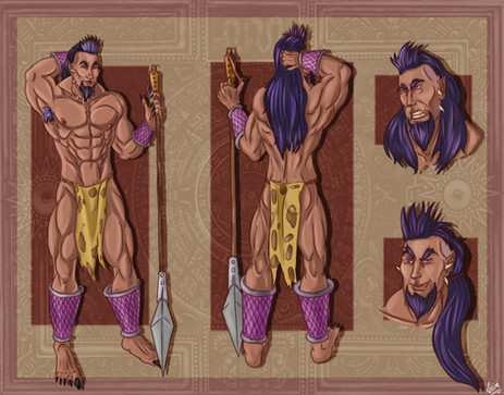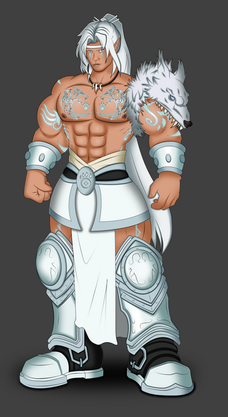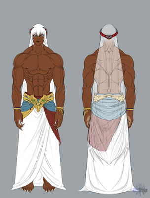 Appearance: wears a White Cloak, wears a Navy Blue Thong with a long White cloth to cover his front, Fur Boots, long Black Raven Hair (Braided), Tattoo on his back, Brown skin, and Navy Blue Eyes