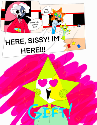 everyone is wearing pajamas but they switched with each other!Shine is wearing Snowfall's Pajamas.