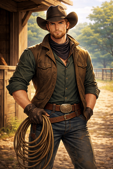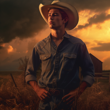 #adoptable #ai #belt #beltbuckle #bluejeans #clouds #cloudysky #countryside #cowboy #cowboyhat #drygrass #exclusive #handsomeman #hay #lasso #muscular #oklahoma #plaidshirt #rope #southern #storm #stormyweather #tornado #twister #wrangler #2024 #cowboyjeans #southernusa #rositathecardmaker