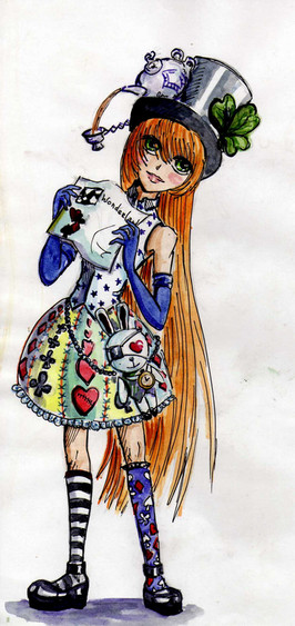 I LOVE HER DESIGN SO MUCH. It just kind of popped in my mind, which has been happening with all the designs for this collection... lol. xDDDDDDDDDD Anyways, the whole magician thing goes with her character so well <3 And it came up almost exactly like how I imagined it. I had a little bit of trouble with the colors... there were two different color schemes in my mind and I didn't know which one to go by... xDDDDD But it looks pretty good with this one!! I like the lineart too. Things are just going great with this project, I like how the designs are coming upAlice is from Canada and has control over emotions. She's that one weird kid that doesn't interact much with the others and kind of goes their own way. She loves magic tricks, and is very good at them.