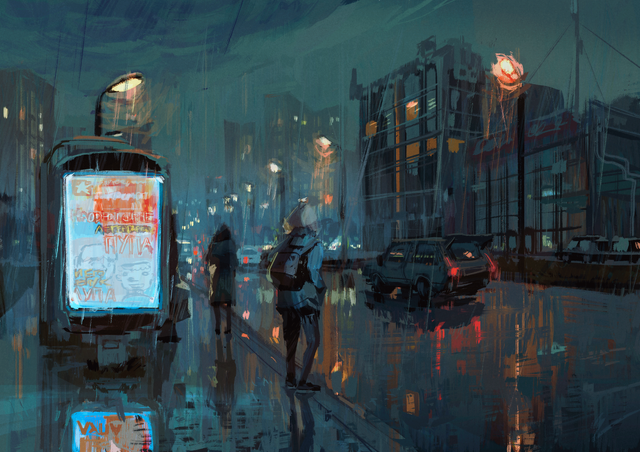Holy, exquisitely magnificent! This Majestic Bus Stop is stunning and All of The Oriental-Like Characters look incredible! The designs, decor, expressions, poses, interactions, bench, artwork, graffiti, umbrella, clothing, sidewalk, signs, road, house, architecture, newspaper, kitty, trees, plant life, sunlight, shadows, atmosphere, textures, hues, concept, composition, uniqueness, lighting, colors, style, and other details are also wonderful! Amazingly beautiful work!