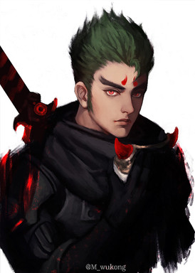 Damn he's smokin' hot. Love the design of his armour and the fire accents (I think they are?).
