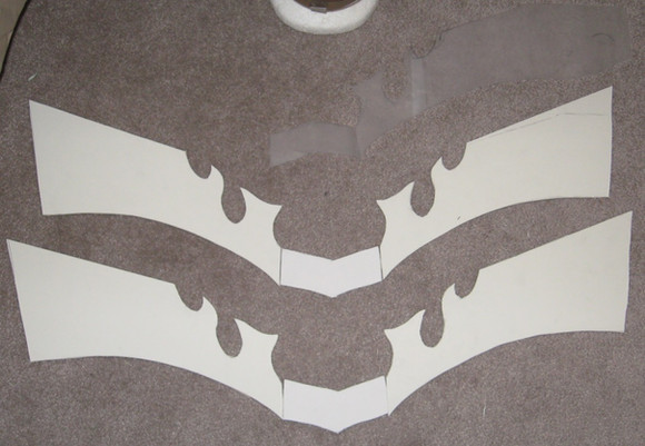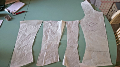 So here's the pattern I used to make my last hidden blade gauntlet from AC Syndicate. This is the black and grey "wrap around" style one from my gallery, based on the level 7 Assassin Gauntlet, but could probably be adapted for the Chimera as well.The top three pieces are the inner, grey piece from my build, which is pretty tight against the arm, the bottom four pieces are the black outer layer, that overlaps itself. The two layers are attached together only at the rear end by the elbow, so you have more freedom of movement while wearing it.