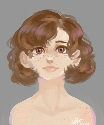 It's always nice to see some of your roughs! As for critiques, I suggest using the same color palette of her face to her shoulders down so her face wouldn't stand out too much. It looks great none the less, I hope to see more of your work sometime in the future