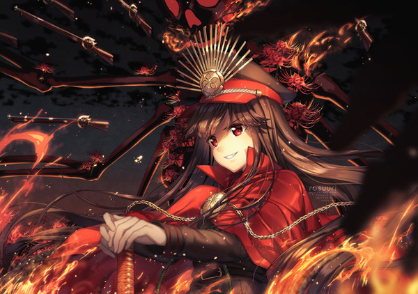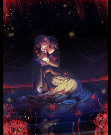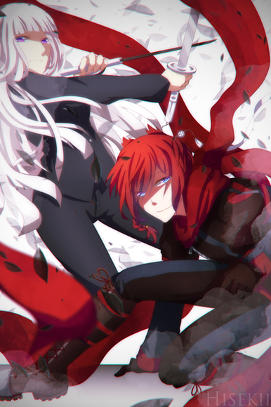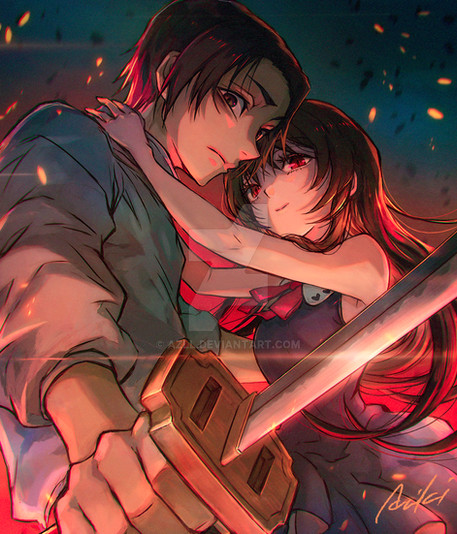 #commission #couple #eyeball #eyepatch #red #scissors #seifuku #sword #throne #yandere #rosuuri #enzouke #spiderlily