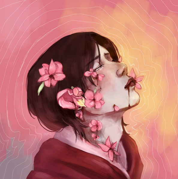 #challenge #crying #digital #digitalpainting #flowers #longhair #longhairedmale #monotone #pastel #pink #soft #tan #tears #nudecolors