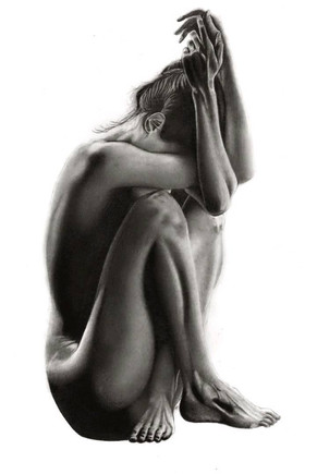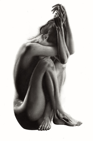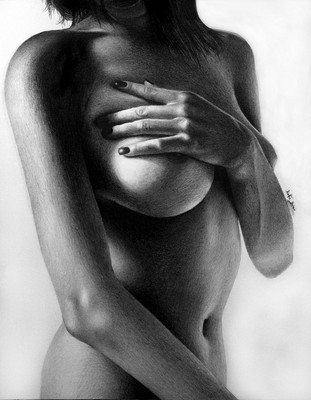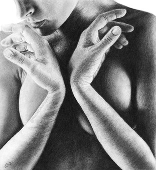 To be honest, that was not exactly a torso study but rather a study of a woman's hands folded across her chest, rendered in a hyperrealistic way, using graphite pencils.