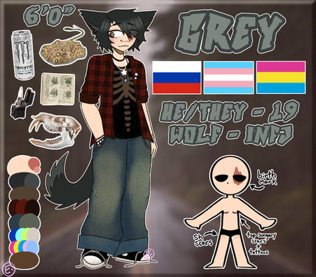 Heya, everyone! I have updated Rot's REF and his pronouns and anatomy recently! He's now AMAB, GNC, and his pronouns are he/him. This is the censored version of the REF, so if you are 18 or older (it is filtered accordingly) you may go to his Toyhouse and see the full image! toyhou.se/21652632.rotThe flags are: bisexual, aromantic, and polyamorous flags respectively if you are unfamiliar with them.
