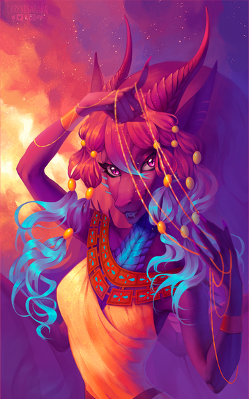 "Who dares disturb my threshold?"This is Less a goddess i created a few years ago and never got around to drawing on the computer till now, umm yea... Less isn't her real name that's just what she goes by because she's been lost to time and forgot her own name (till recently). Soo yea shes a jackalope-hawk thingy and is blind (sorta) but is an oracle so its all good cause she can see and like not see at the same time OwO soooo yea.... Enjoy?