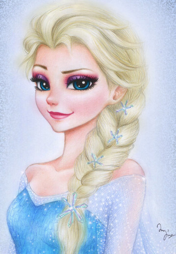 But if you are interested in more detailed steps, I have a tutorial for Rapunzel drawing here: Rapunzel tutorial . My Elsa was done the same way, with the same technique so you can take a look
