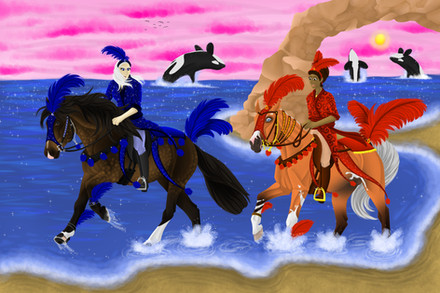 | Horse: Achates R and BA Rozora | | Rider: Isa Rodyo and Dareen Wurdolk | | Starting Number: #8 (Isa and Achates) #9 (Dareen and Toro) | | Class: Beach Race |