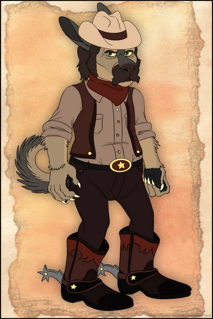 Say howdy to Sheriff Ravi, a character in a story I'm writing.I'm pretty proud of this, it took many hours. Not sure if I like the bg, but I guess it can be made better later. Ravi is a character I've had for some time, he's been around since the beginning, right alongside my fursona Robby. He used to be a captain in the Spanish-American war, now he's a sheriff of a town called Last Chance. His relationship with Robby is variable, I won't give anything away now