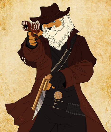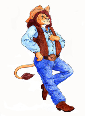 Cool character!Great artwork! It's like" Red Dead revolver" meets Kimba the white lion or "for a fist full of dollars" meets Lion King! Terrific!