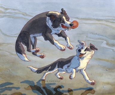 Pet portrait for a client- Apache the border collie relaxing in the sun.MEDIA: Watercolor and colored pencil on hotpress watercolor paper. Original is 8x10", this image is cropped a little