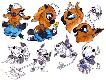 This is some of the more presentable work I've done so far- Top three are quick graphite drawings with digital color blocked over 'em, the two tortoises below are studies of Indian Star Tortoise patterning, and the three below those are character designs for Ruby, the main tortoise girl. The moose kiddo on the right is a study for the other main character, who I think is going to be named Dustin. That one's drawn with ink and marker, the rest is digital.