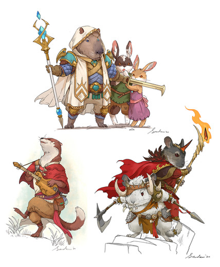 Malphas the badger-magpie demon: a character design commission project for Deo . He’s a chatty old fellow who spins a good yarn, but keep your guard up! I went with the idea that (in bipedal form) his wings take on a more symbolic look, and when he’s a beast they actually work as wings. Each pose can be viewed individually via the tumblr post here.
