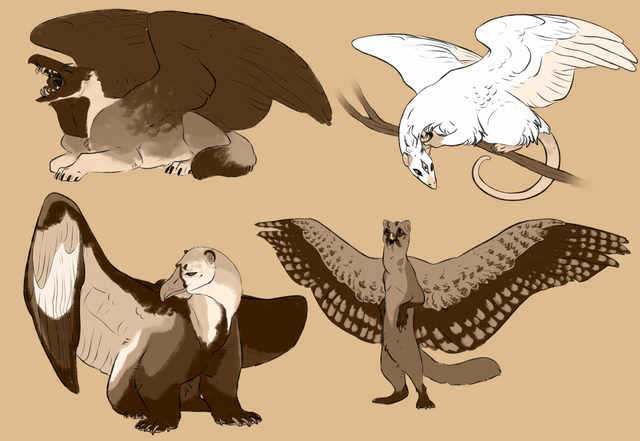 Ha, I think magpie and mustelid go well... I made a magpie-weasel gryphon aaaaaages ago: vannjaren.deviantart.com/art/W… (very old art, please excuse the levels of fail... :'D) I might draw that little dude again some time...