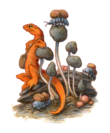 I love this!! ❤️ Oak leaves hold a special meaning to me, so it's a treat seeing them brought to life in such a fun way. The plants and fungi look so natural, and our little friend here blends in so well; I imagine I could have walked past him on a hike! Love your texturing and warm fall colors, as usual. I'd love to read a little description of his habits, too.