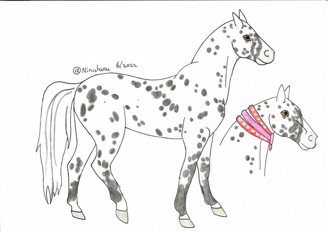 note: spots are random and need not be in any exact specific place when drawn. I'm pretty sure IRL individual spots shift/change/fade/reappear as the horse ages/sheds anyway.Name: Dusty