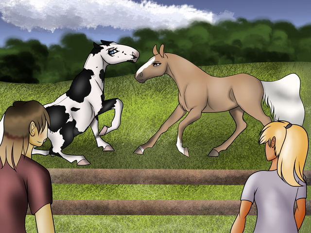 Except American got moved in first, and when Baby showed up the next day with Lithium's AlbuferaHorse s from Part 2, he had already declared the entire place his own and was not happy to see another stallion show up with HIS hoomin, and one who had an equally proud and self-important disposition. They can't both be king of the pasture! Shadow Knight on the other hand is still depressed about leaving Lithium and just wants to go home, except THIS is home now... ugh.