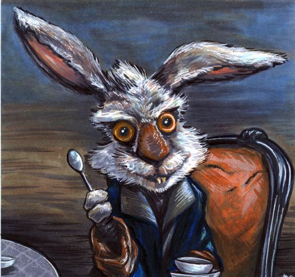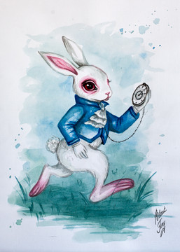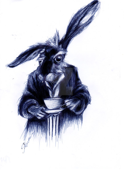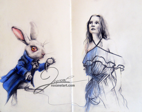 Whit Rabbit from Alice in Wonderland (by Tim Burton)Charcoal and colored pencils on Moleskine