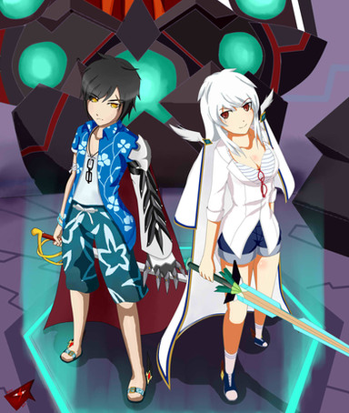 ~Elsword Fanart~-Raven (Weapon Taker) & Rena (Trapping Ranger) -